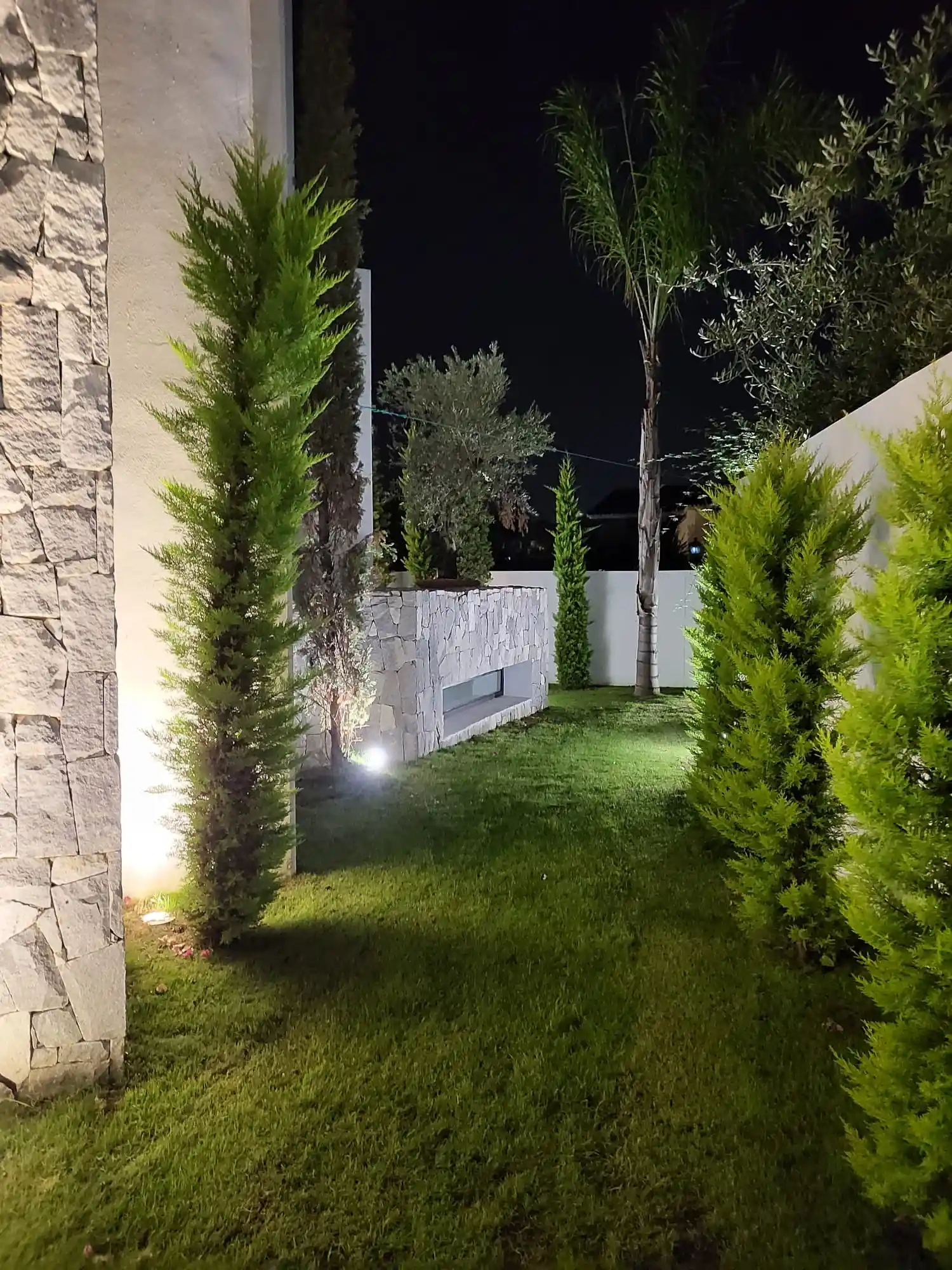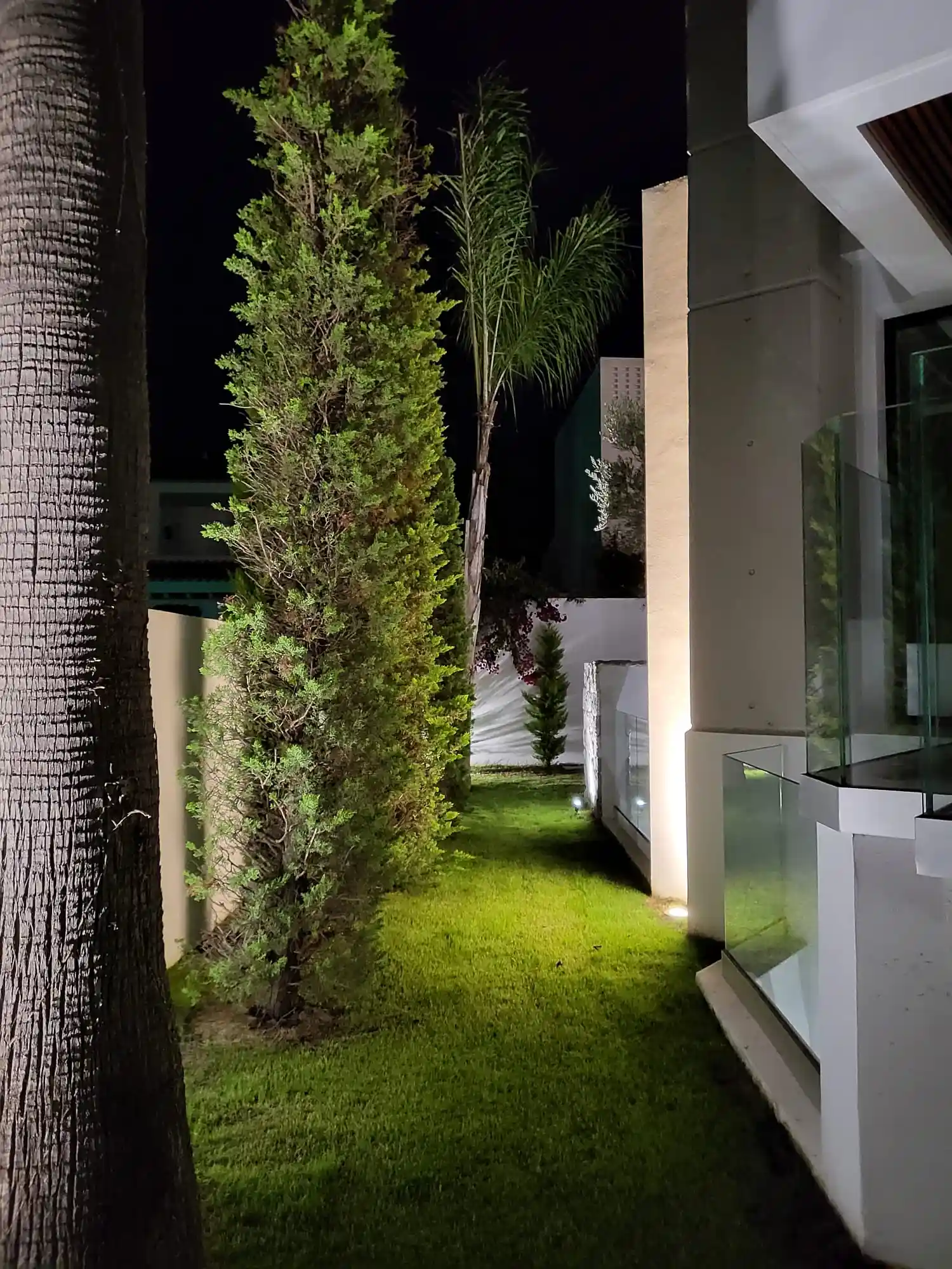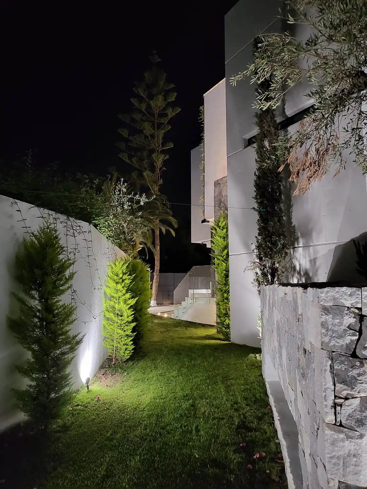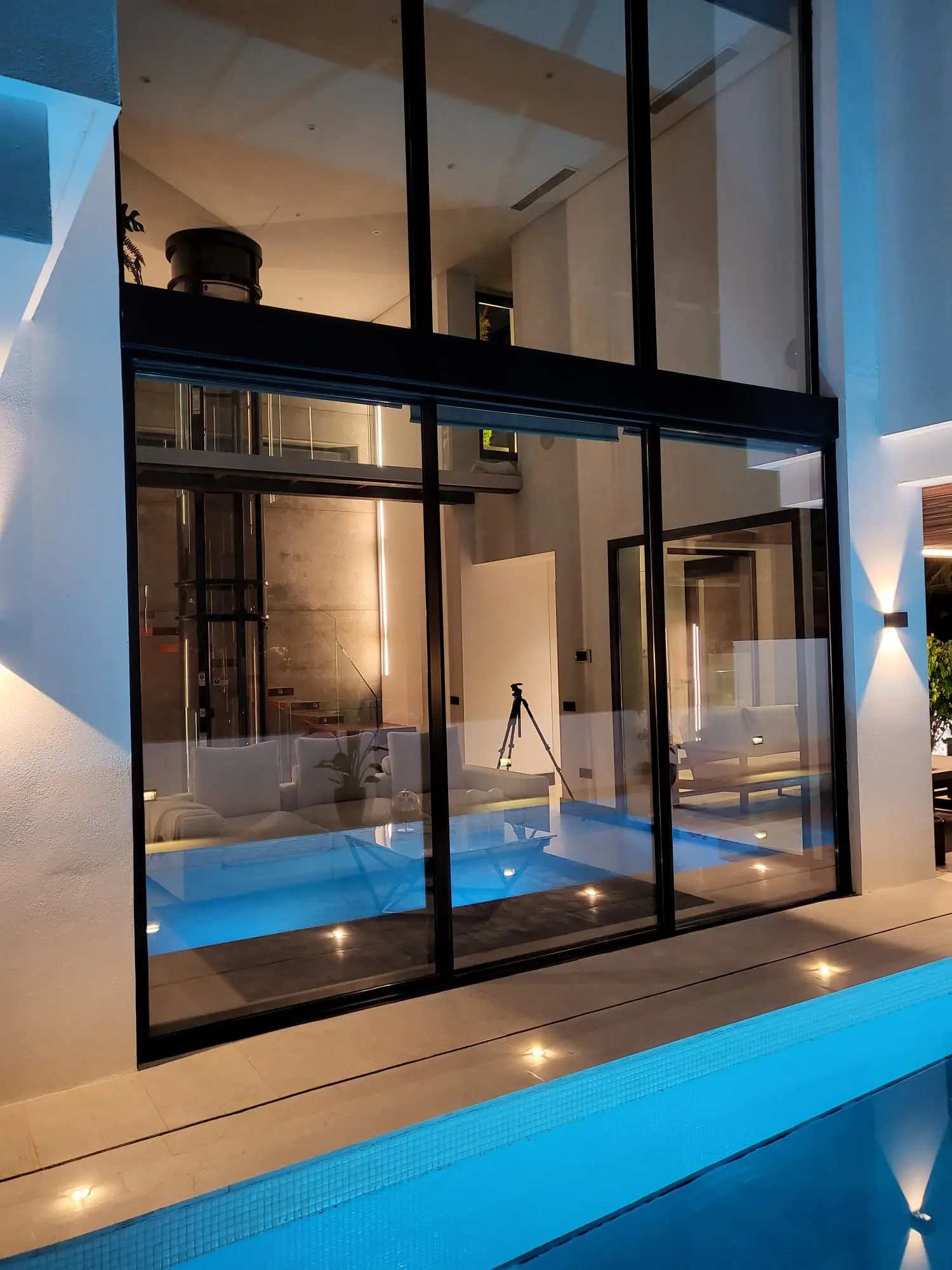 Set on a 503 m² plot with 836 m² distributed across three levels, the residence showcases a striking façade combining concrete, wood, stone and glass, enhanced by vertical gardens with automated irrigation. Inside, the home features a dramatic three-story concrete wall, a double-height living area and a Bulthaup kitchen equipped with Gaggenau appliances.