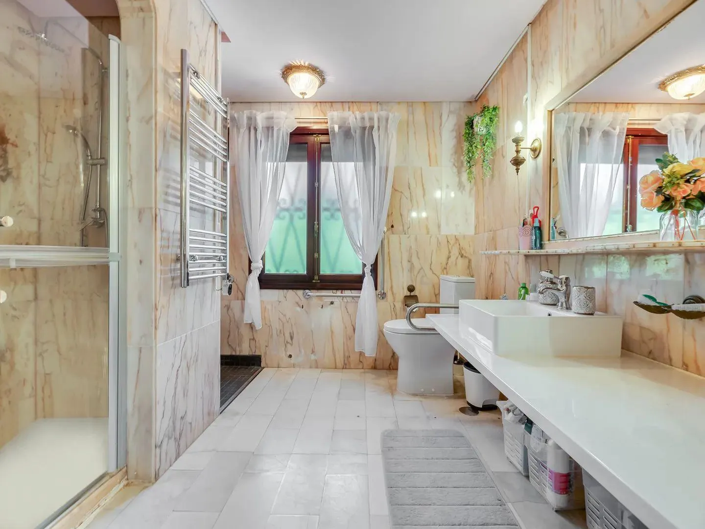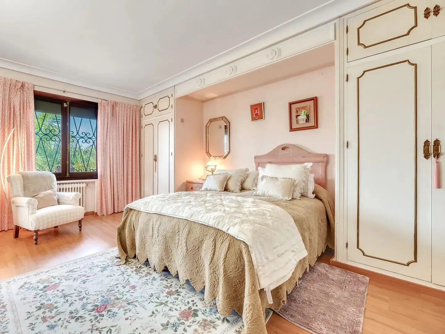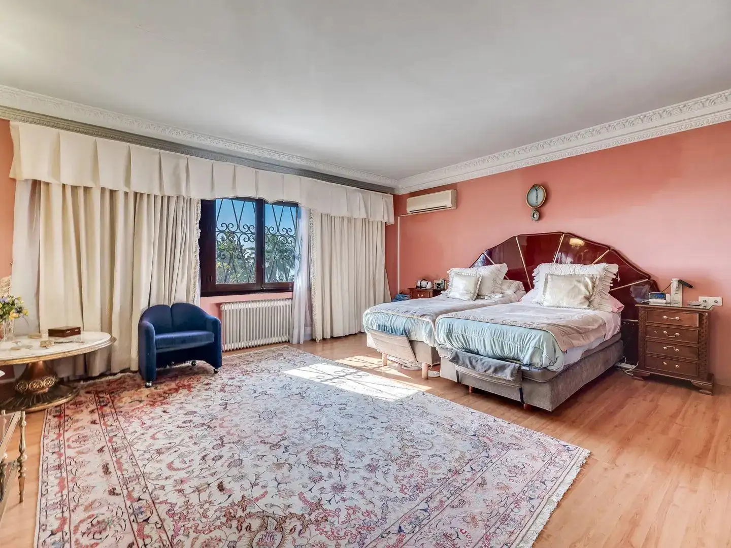 It features seven bedrooms and four bathrooms, including a master suite with a walk-in wardrobe. Three spacious living rooms create distinct areas for relaxation or entertaining, while two fully equipped kitchens provide flexibility for family use or guest accommodation. High-quality finishes include marble and wooden flooring, built-in wardrobes, air conditioning and a large storage room.