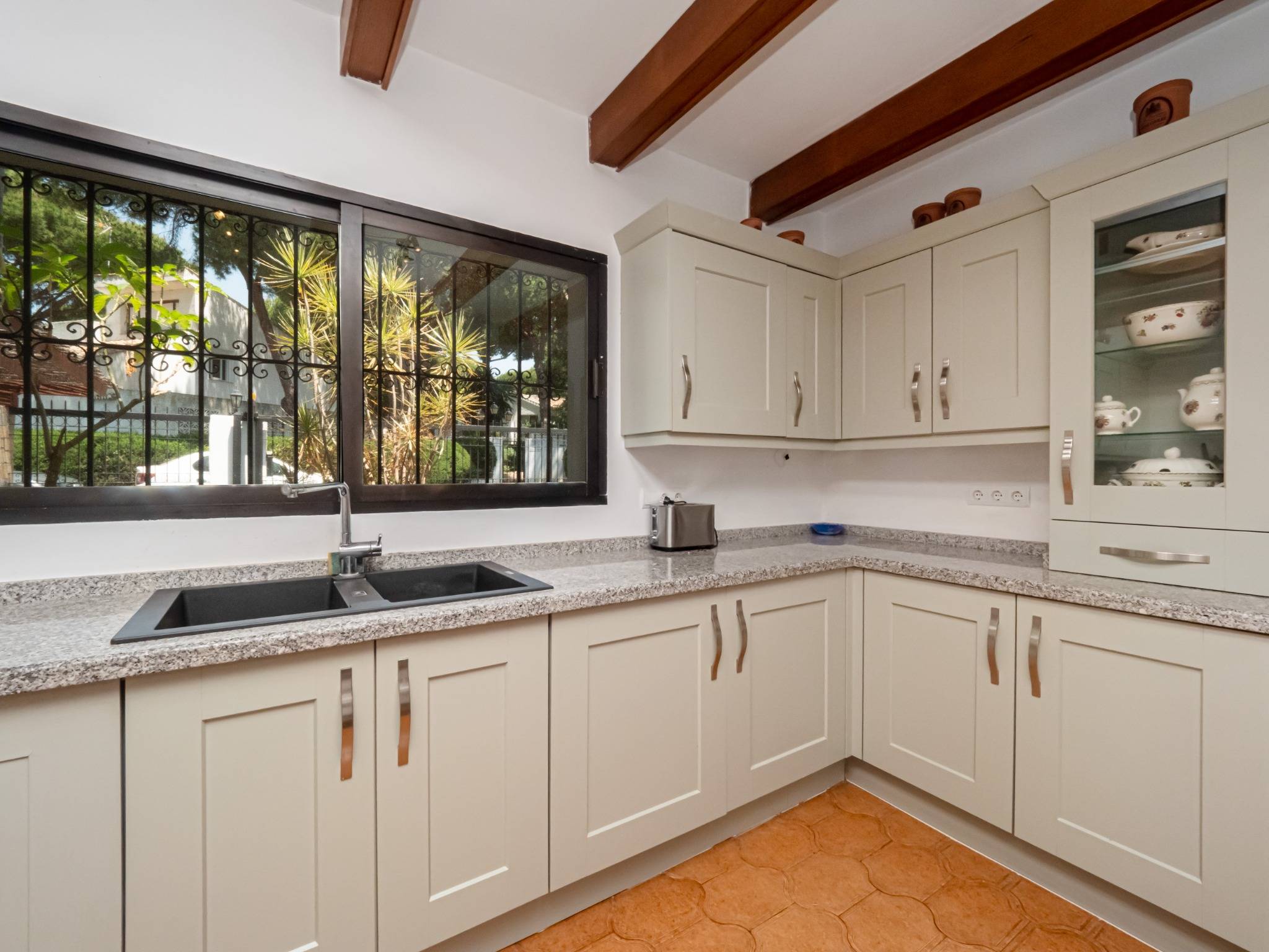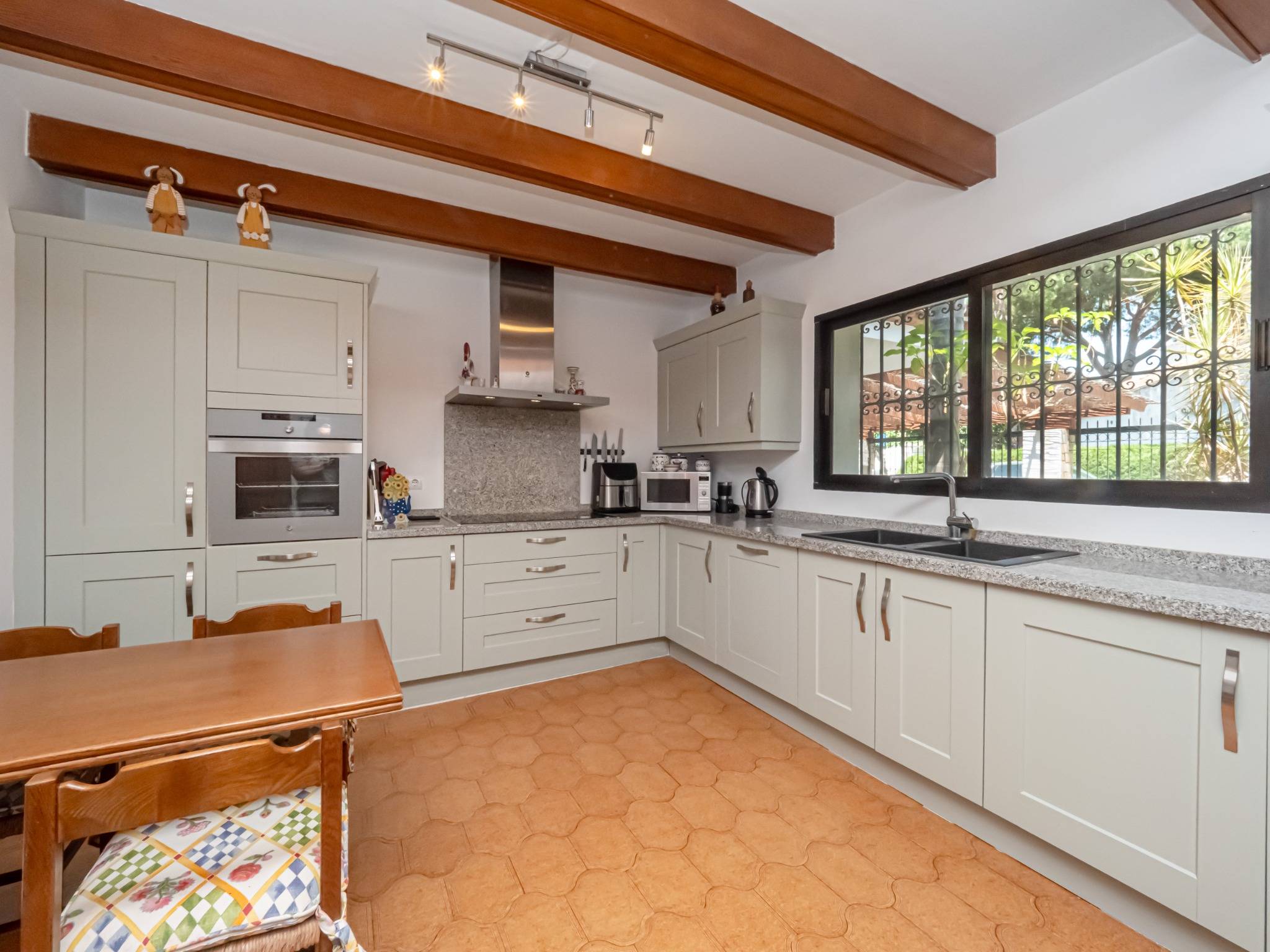 Outside, enjoy a private garden, relaxing pool, covered garage, and space for 3 more cars. Built in 1986, it includes double-glazed windows for energy efficiency. Ideally located in a quiet residential area yet close to shops, restaurants, schools, and public transport. A perfect home for those seeking comfort, style, and unbeatable beach proximity.