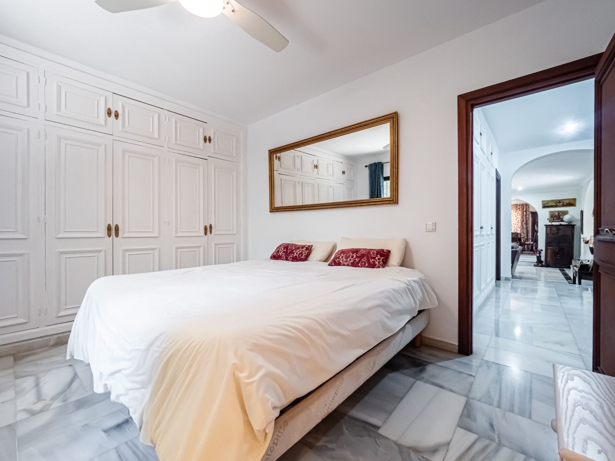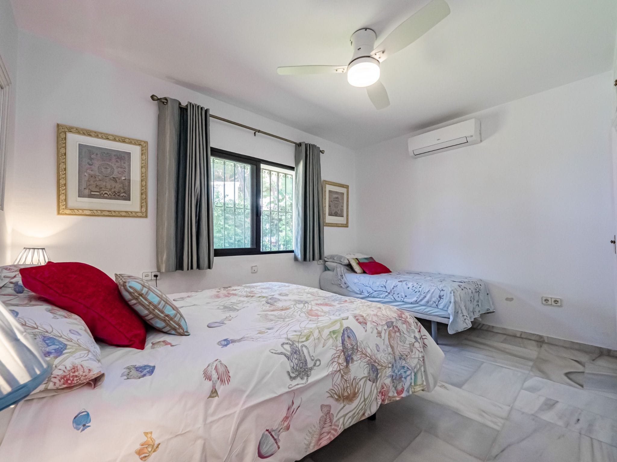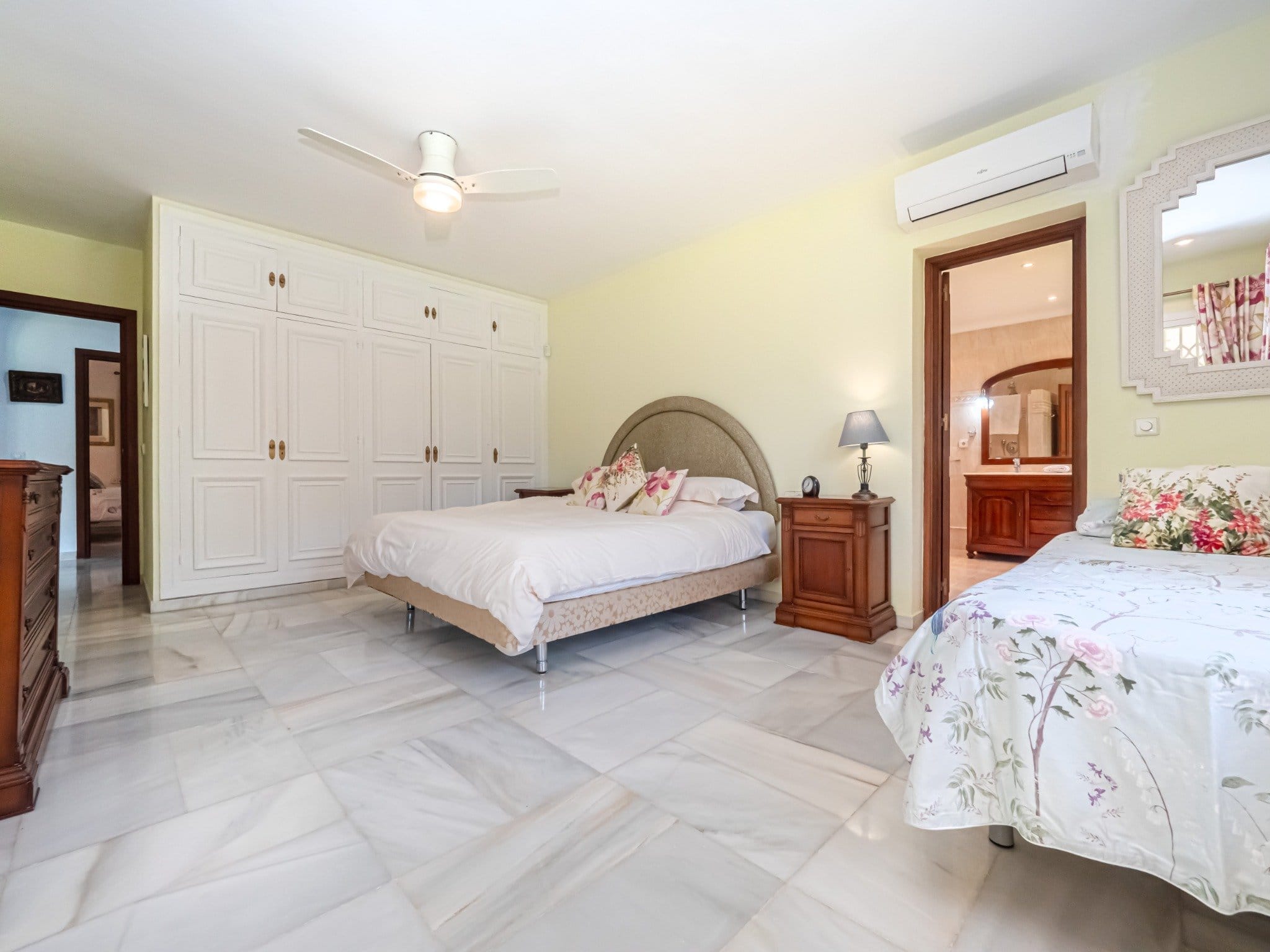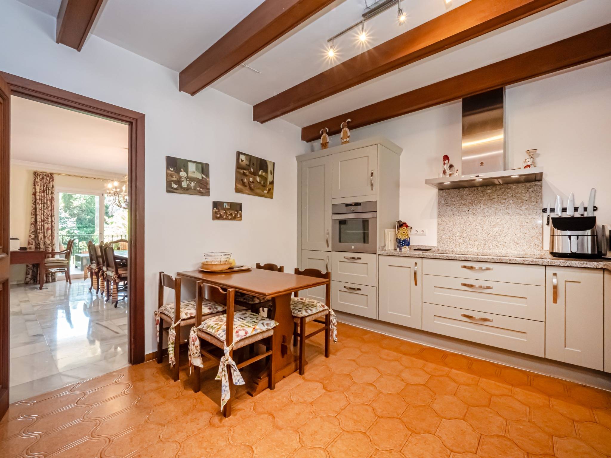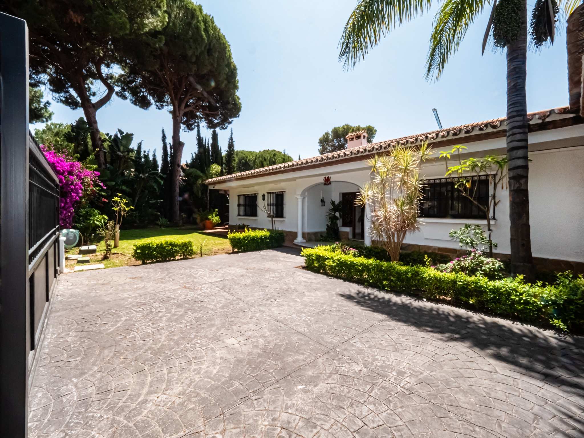 Exclusive villa located in the prestigious El Paraíso area of Estepona, just 50 meters from the beach. Set on a 1,437 m² plot with 337 m² built, this home offers luxury, privacy, and Mediterranean charm. It features 3 spacious bedrooms, 4 bathrooms (2 en suite and 1 outdoor), a bright living room with A/C, a fully equipped kitchen, and elegant marble flooring.